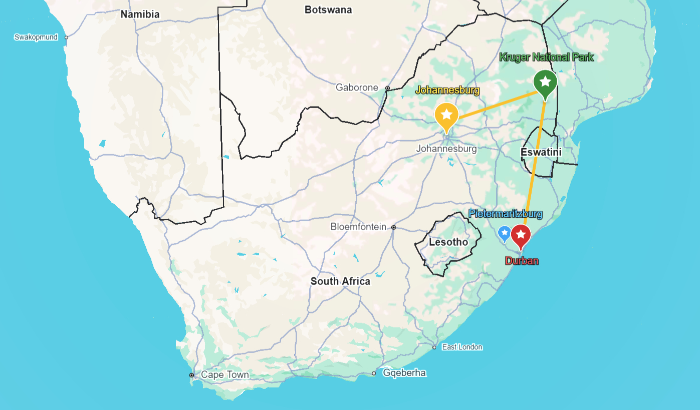 ఇక, నా ఆఫ్రికా ట్రిప్పు గురించి మిత్రులతో ప్రస్తావిస్తే ఆఫ్రికా వెళ్లి సఫారీ చూడకపోవడమేమిటన్నారు. దాంతో, సఫారీక్కూడా సమయం కేటాయిస్తూ నా ప్రణాళిక ఖరారు చేసుకున్నాను. ఎనిమిది రోజుల్లో రెండ్రోజులు జొహానెస్బర్గ్లో, మూడ్రోజులు క్రూగర్ నేషనల్ పార్కులో, మిగతా మూడు రోజులూ డర్బన్లో — అదీ ప్లాన్. నా ట్రావెల్ ప్లాన్ చూసి ముచ్చటపడి నా సహోద్యోగీ, స్నేహితుడూ అయిన జగదీష్ కూడా నాతో వద్దామని నిర్ణయించుకున్నారు. తను రావడంవల్ల మంచి తోడు దొరకడమే కాకుండా మంచి నేవిగేటర్ కూడా దొరికినట్టయింది. లేకపోతే, తెలీని దేశం, తెలీని రోడ్లమీద ఎడమ ప్రక్క డ్రైవింగ్తో చాలా కష్టపడుండేవాణ్ణి. సౌతాఫ్రికాలో పబ్లిక్ ట్రాన్స్పోర్టేషన్ గొప్పగా లేదు. డ్రైవ్ చెయ్యకుండా మనం చూడాలనుకున్న ప్రదేశాల్ని చూడ్డం కష్టం!