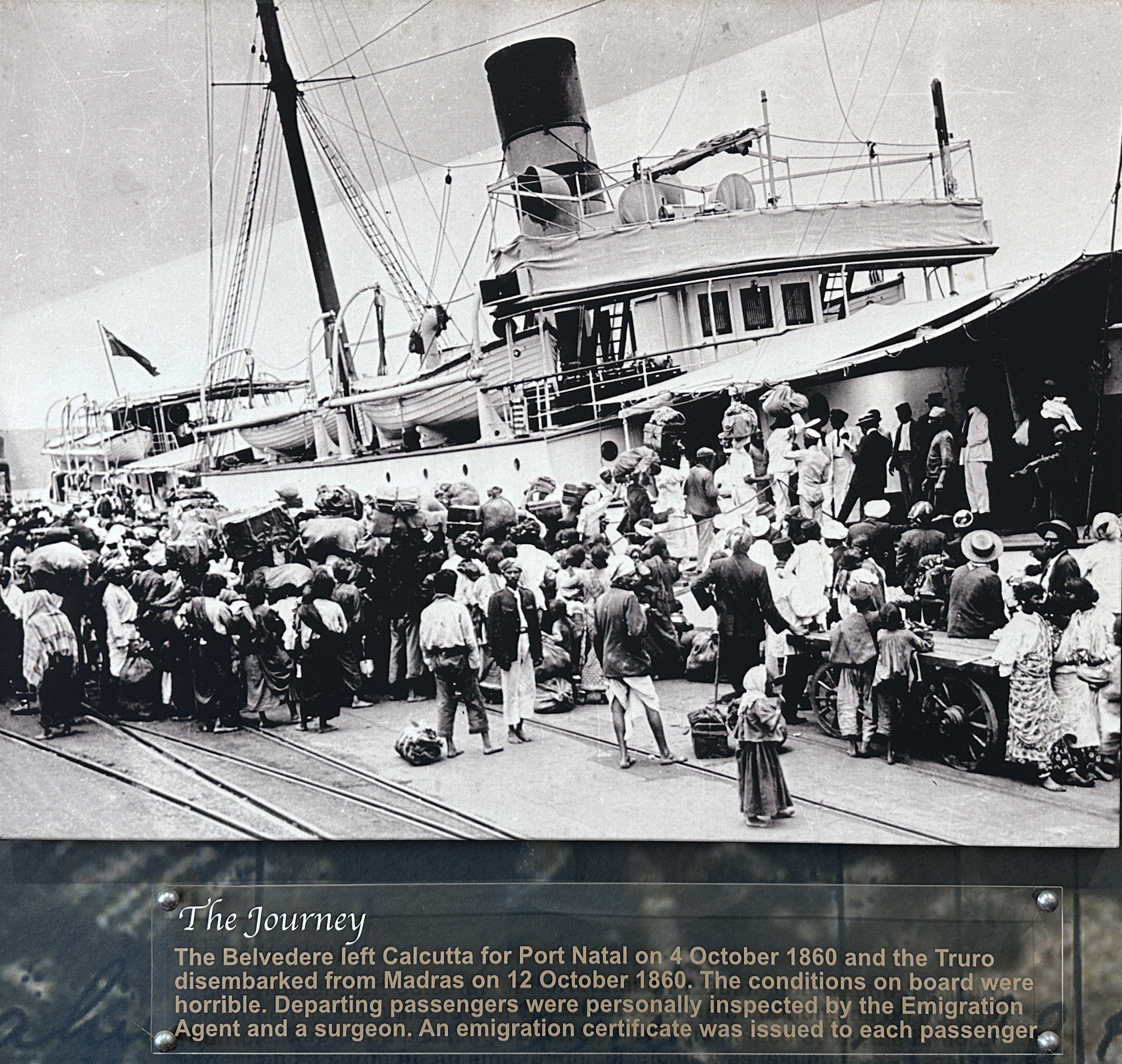 ఈ 1860 హెరిటేజ్ మ్యూజియంలో ఈ కూలీలు వచ్చిన పరిస్థితులూ, వారు పడ్డ కష్టాలూ, తరువాతి కాలంలో సమాజంలో వారి ఎదుగుదలా, అపార్టైట్ని ప్రతిఘటించడంలో ప్రవాసుల పాత్ర మీద ఎగ్జిబిట్స్ ఉన్నాయి. ఇది పెద్ద మ్యూజియం కాదు. పట్టుమని పది గదులుంటాయేమో… కానీ ఒక అయిదు గంటలు ఇందులో గడిపినా చాలలేదనిపించింది. ముఖ్యంగా మద్రాసునుంచి వెళ్ళిన ట్రూరో పాసెంజర్ లిస్టు చదువుతుంటేనో, ఫొటోల్లో వాళ్ళ ముఖాలు చూస్తుంటేనో — వీళ్ళు మనవాళ్ళు, పాపం ఎంత కష్టపడ్డారో అని హృదయం ఆర్ద్రం కాక మానదు!