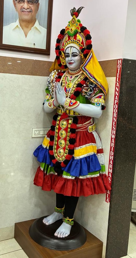 ఇంతకీ ఆ కళాకృతి ఇక్కడ ఈ హోటల్లో ఎందుకుంది? తొలినాటి యక్షగానబృందాల్లో ఒకటై, ఎంతో కీర్తిని సాధించిన ‘ధర్మస్థళ మేళా’ అనే బృందం, ఈ మంజునాథ స్వామి ఆలయానికి అనుబంధంగా ఉందట!