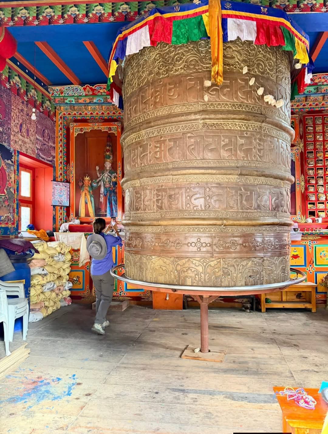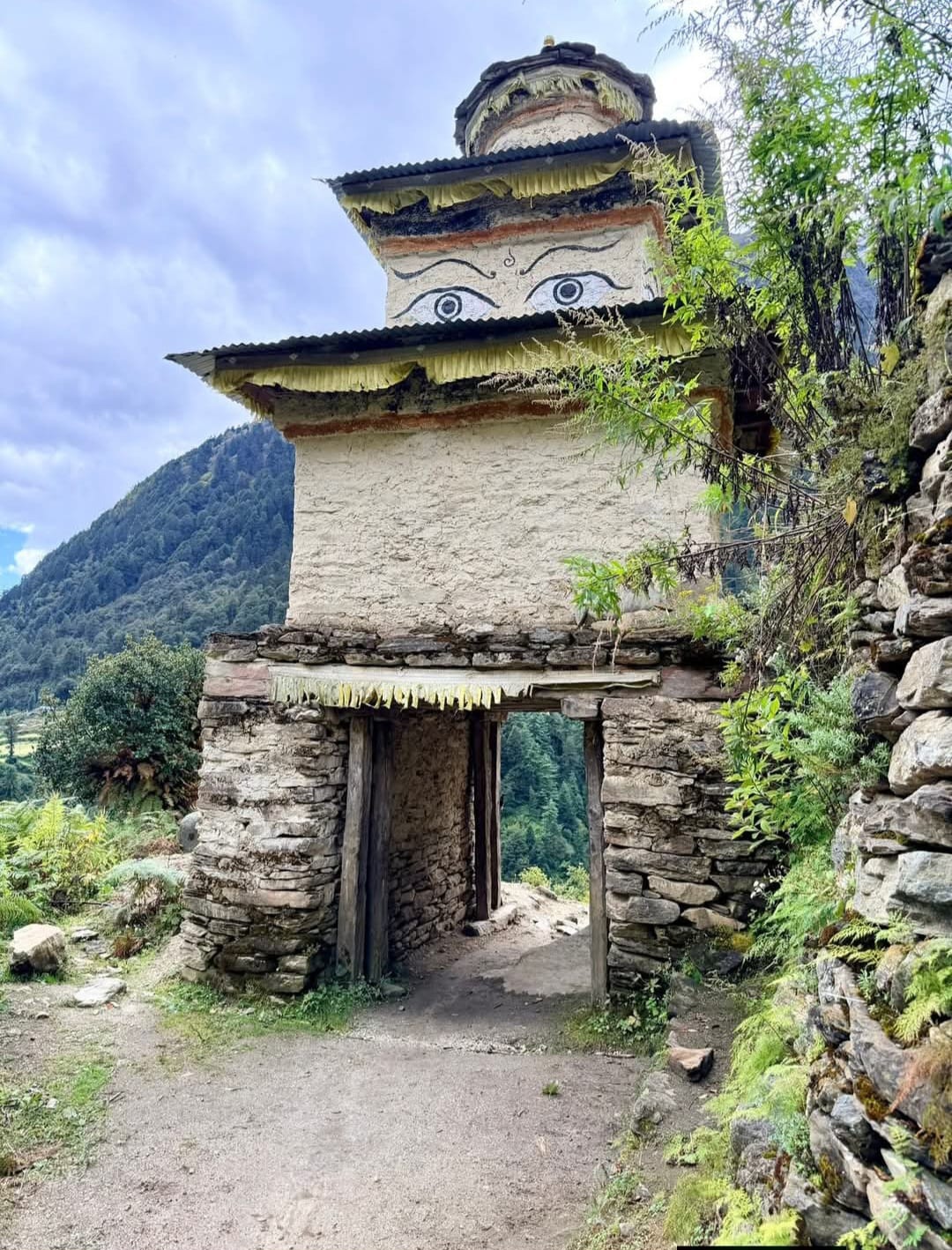 దారిలో లిహి అన్న గ్రామంలో కనిపించిన బౌద్ధమందిరం దగ్గర కాసేపు ఆగాం. బూట్లు బయట వదిలి మందిరం లోపలికి వెళ్ళాం. మందిరప్రాంగణంలో స్థూపాకారం గల పెద్ద ప్రార్థనాచక్రం ఒకటి ఉంది. ఆ స్థూపాన్ని గిరగిరా తిప్పి మా ప్రయాణం మంచి వాతావరణంలో విజయవంతంగా సాగాలని ప్రార్ధించాం. అక్కడ ఉన్న బౌద్ధభిక్షువు ఒకాయన స్థూపాన్ని గడియారమార్గంలో తిప్పితేనే శుభం కలుగుతుందని, వ్యతిరేకమార్గంలో తిప్పితే అశుభ హేతువు అవుతుందని సూచించాడు. అది పాటించాం.తర్వాత వచ్చిన షో అన్న గ్రామ పొలిమేరలో గాఢ ధవళవర్ణం నిండిన బౌద్ధ స్వాగతద్వారం మాకు స్వాగతం పలికింది. దానిమీద చక్కని చిత్రాలు ఉన్నాయి. బుద్ధుని నేత్రాలు కూడా చిత్రించి ఉన్నాయి. అక్కడ మంచినీళ్ళు, తినుబండారాల కోసం ఆగాం. అలా ఆగినపుడు సింగపూర్లో స్థిరపడిన రెండవ తరం నేపాలీ యువకుడొకడు కనిపించి పలకరించాడు. అతనితోపాటు మరో ఇద్దరు సింగపూర్ స్నేహితులూ, మరో డచ్ ట్రెకర్ల బృందమూ ఉన్నారు. ఈ డచ్ ట్రెకర్లందరూ 60 సంవత్సరాలు నిండినవాళ్ళు. వీళ్ళంతా ముందు ముందు మాతోపాటు ట్రెక్ చేస్తారన్నమాట. షో గ్రామం దాటాక మా బాట మరింత ఎగువ ప్రదేశాలకు దారితీసింది.